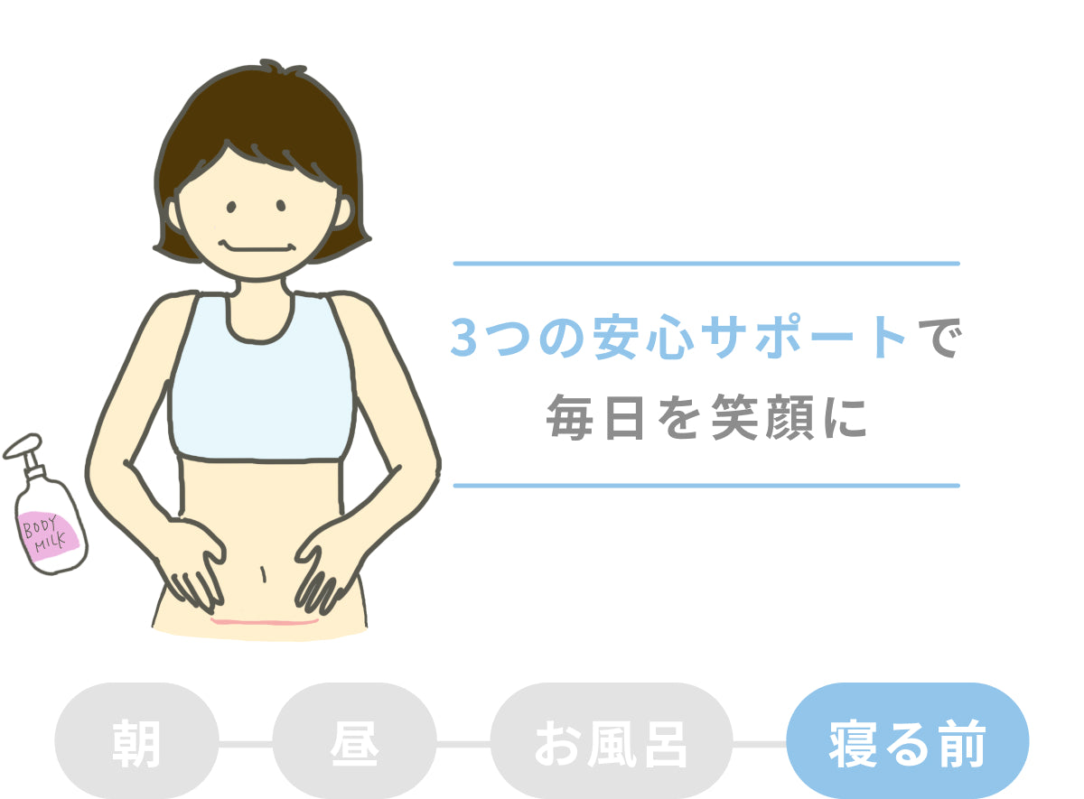 帝王切開を経験されたママのデリケートな肌を守りながら、産後の忙しい毎日に寄り添う、こだわりの品質と使い心地。