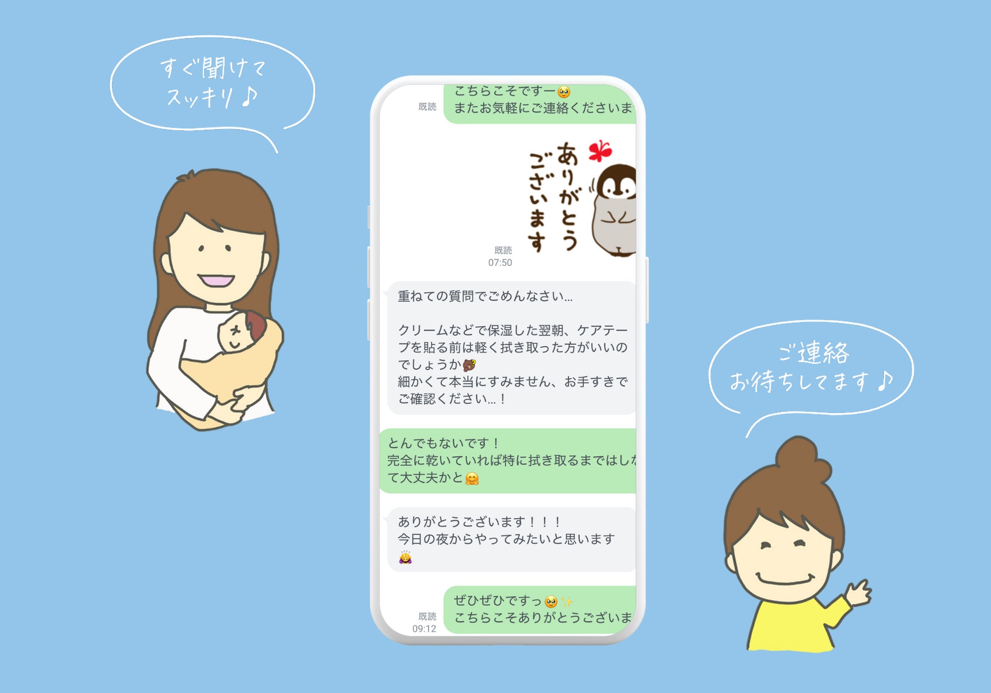 高品質であることはもちろん、助産師さんと連携した購入後のアフターフォローサービスも整えました。「ケアを頑張りたい」ママの気持ちを最後まで応援し、伴走するケアテープです。