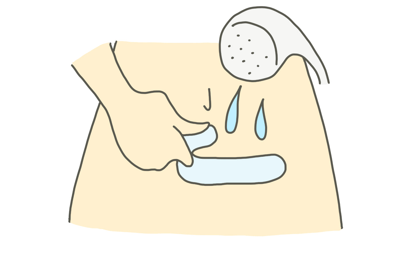 傷あとにシャワーをあてながら、やさしくゆっくりと剥がします。