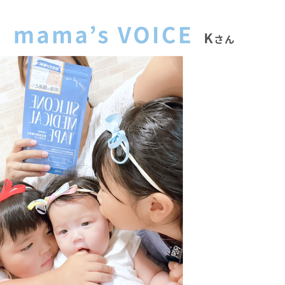 子供たちと一緒に入るお風呂でテープを洗うので、赤ちゃんの誕生について話すきっかけになりました。毎日交代でお姉ちゃんたちがテープを洗ってくれてます!私の妹が緊急帝王切開で出産したので、テープを他の出産祝いと合わせて一緒に渡そうと思います。
