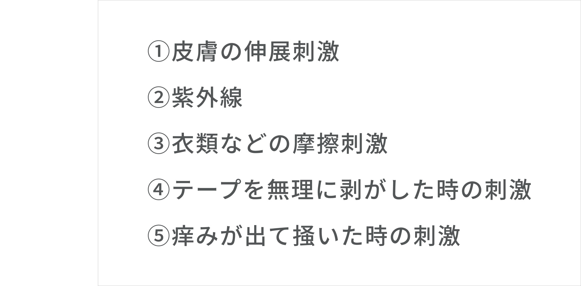 主な要因は「体質」と「物理的剌激」があり、本品は「物理的剌激」である伸展剌激や摩擦からの保護や、日常生活の中で皮膚が激しく引っ張られないよう固定する役割が期待できます。